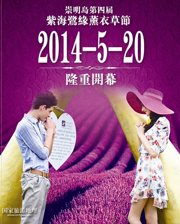 5月20日至6月20日,為期1個月的2014上海崇明島第四屆薰衣草節(jié)將在崇明島舉行,市民不用去法國普羅旺斯就可欣賞到紫色花海的美景了。此次活動地點設在中國最美麗的“花園”——上海崇明島上的香草種植園紫海鷺緣浪漫愛情主題公園內(nèi)。