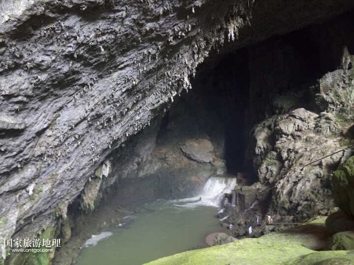 這是羅甸縣的大小井風(fēng)景區(qū)的響水洞天坑,典型的喀斯特地貌景觀。這個天坑位于大井出水口西側(cè)大約200米處,坑口高500米,寬500,深200米。內(nèi)有暗河,水聲轟鳴,在坑外十里處都可以清晰聽到,故稱為響水洞天坑坑口寬敞明亮,暗河奔流,水花飛揚(yáng),氣勢磅礴,蔚然壯觀??觾?nèi)巨大的鐘乳石如寶劍懸掛在墻壁上,有的錯落城橋,有的如猛虎下山,千姿百態(tài),美不勝收。