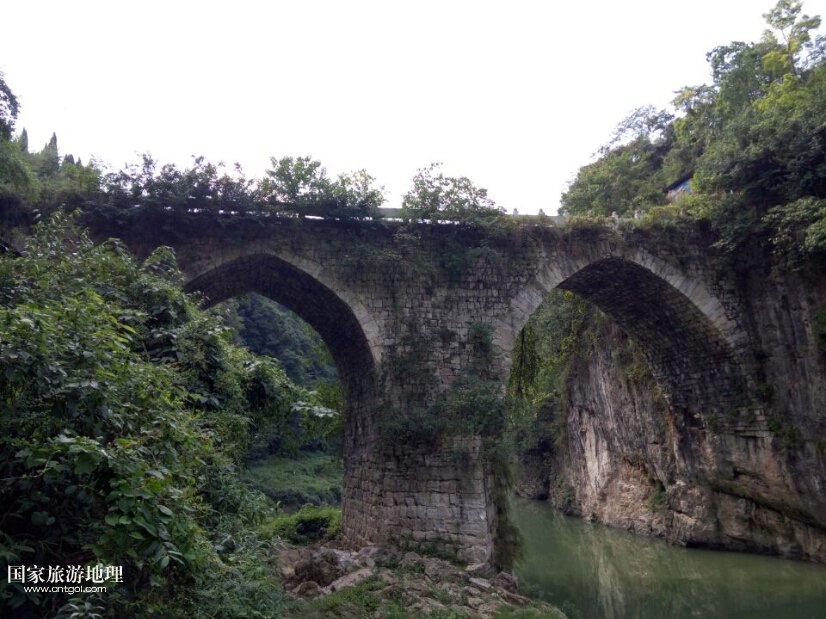 這是黔南福泉的葛鏡橋。葛鏡橋建造于明朝萬歷年間,距今已有四百多年的歷史,是當(dāng)時的平越人葛鏡出資建造。當(dāng)時造橋技術(shù)落后,加之洪水等自然因素,葛鏡造橋也費(fèi)盡周折,造橋三次才最終建成葛鏡橋。葛鏡橋全長51.44米,3孔,大孔高9.61米,橋面寬8.5米,高約30米;三孔跨徑分別為25.62米、12.3米和6.26米;三孔拱高分別為9.61米、9.9米和5.02米。工程艱巨,雄偉壯觀,“為西南橋梁之冠”。葛鏡橋歷時數(shù)百年,至今仍堅(jiān)固如初,實(shí)為罕見,也有“北有趙州橋、南有葛鏡橋”之稱。