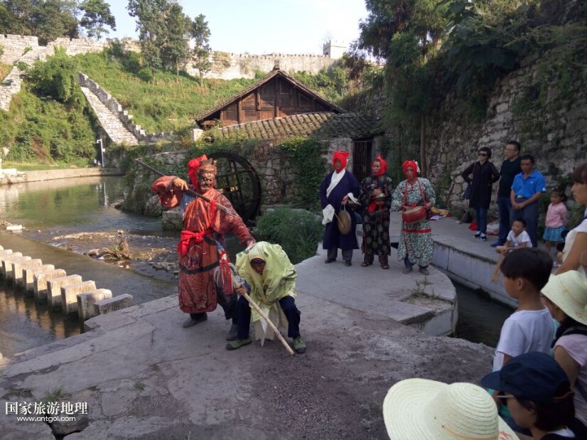 這是福泉民間老藝人在表演福泉陽戲《二郎鎖孽龍》。福泉陽戲,所謂陽戲是指唱給活著的人聽的;也有陰戲,便是唱給死去的人聽的。陽戲主要有兩種功能,一種是娛樂,另一種便是還愿納吉,意思是之前向天神祈求的事情實(shí)現(xiàn)了,于是便唱起陽戲向天神還愿,同時也向天神祈求吉祥。福泉老藝人在表演陽戲的時候,雖然言語不通,但依然可以感受到陽戲所具有的獨(dú)特魅力,以及陽戲中所蘊(yùn)含的民俗文化。