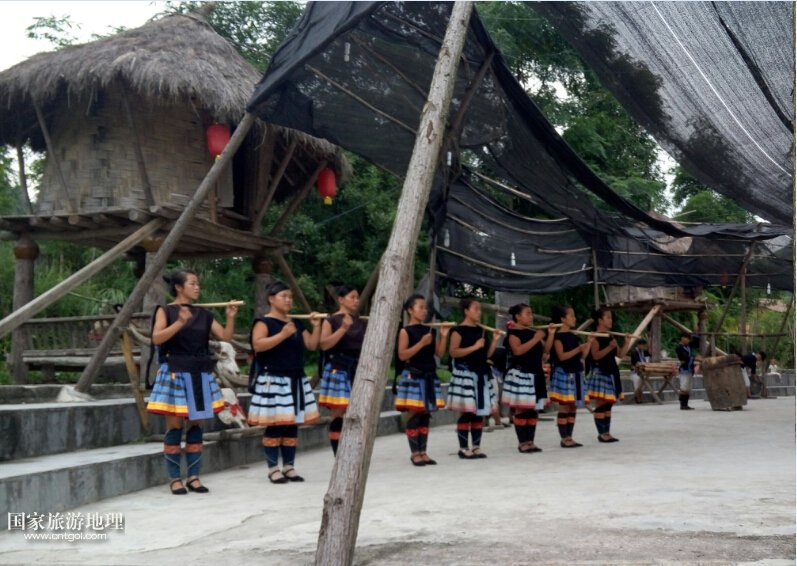 這是黔南荔波縣瑤寨姑娘在表演舞蹈。荔波瑤山白褲瑤是一個歷史悠久的古老民族,是一支長期深居高山密林,過著刀耕火種,自給自足的封閉式狩獵民族,至今仍保存著母系氏族社會向父系氏族社會過渡的遠(yuǎn)古遺風(fēng),因其民族文化保存最完整而被聯(lián)合國科教文衛(wèi)組織賜予“人類文明的活化石”之稱。又因其崇拜太陽神,信奉百神靈,圖騰與遠(yuǎn)在大洋彼岸的印第安人極為相似而被外界稱為“東方印第安人”。